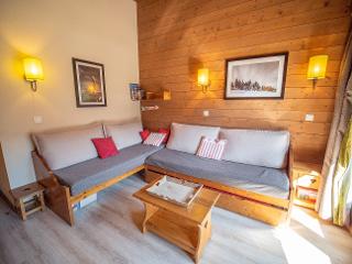 L'appartement: Dans le séjour se trouve un canapé convertible 2 couchages 140 . Chambre avec un lit double 140 et un lit simple mezzanine. La cuisine américaine est équipée de plaques vitrocéramiques, lave-linge, four combiné et réfrigérateur. Salle de bains et wc indépendant.Balcon, casier à ski dans la résidence. Les locataires ayant séjourné dans cet appartement lui ont attribué en moyenne la note de 6.86/10. Ménage en supplément et animaux acceptés (supplément animal = 40€).