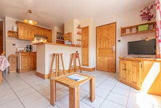 Appartement situé dans une maison individuelle, proche des commerces et à 300 m du front neige. Arrêt de la navette gratuite à proximité. Situation sur le plan de la station : C4