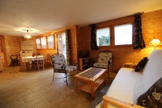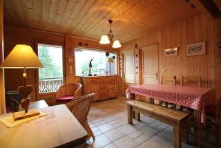 La cuisine, ouverte sur le séjour, est entièrement équipée avec quatre plaques gaz, un four, un micro-ondes, un réfrigérateur, un congélateur, un lave-vaisselle. Côté équipements, le chalet dispose d’un écran plat, d’une connexion WIFI et d’un lave-linge. Une cheminée suspendue agrémente le séjour. Un local à skis et un abri pour deux voitures sont également à disposition. Le logement est non-fumeur, les animaux ne sont pas admis. Un logement indépendant est occupé au sous-sol.