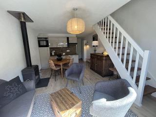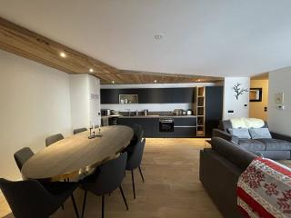 La cuisine entièrement équipée comprend plaques à induction, four, réfrigérateur, lave-vaisselle et micro-ondes. Côté confort et loisirs, l’appartement bénéficie d’un système de sonorisation intégré dans toutes les pièces, de plusieurs écrans plats, d’une connexion WIFI, ainsi que d’un lave-linge. Un casier à skis avec chauffe-chaussures, une place de parking couverte, une place extérieure, ainsi qu’un chargeur pour véhicule électrique sont également mis à disposition. Le logement est strictement non-fumeur, non accessible aux animaux, et chauffé par le sol.