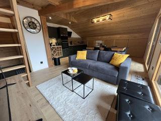 Situé dans la résidence Les Airelles, cet appartement haut de gamme de 140 m² offre un cadre exceptionnel au cœur de la station, à seulement 100 mètres du centre des Carroz et directement au pied des pistes. Idéal pour un séjour en famille ou entre amis, il peut accueillir jusqu’à 8 personnes dans un confort absolu.