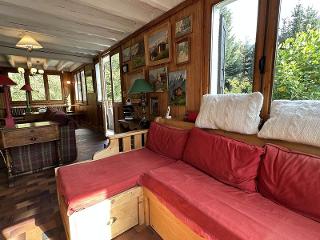 L’appartement, situé au 2e étage avec ascenseur, dispose d’un spacieux séjour ouvrant sur un grand balcon avec une vue imprenable sur les montagnes. Il se compose de quatre chambres : deux chambres doubles avec salle de douche privative et WC, une chambre avec deux lits simples, ainsi qu’une chambre équipée de lits superposés (le couchage en hauteur est déconseillé aux enfants de moins de six ans). Une salle de bains supplémentaire et un WC indépendant complètent les installations sanitaires.