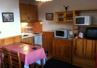 Coin cuisine: dans le séjour. Équipement de la cuisine : 4 plaques vitro-céramiques, micro-ondes, lave-vaisselle, réfrigérateur, cafetière électrique, grille-pain.