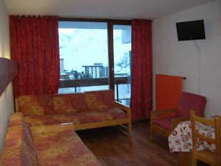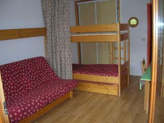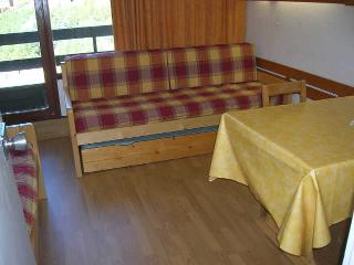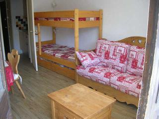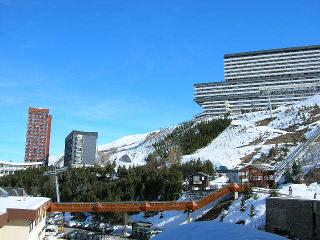 Studio de 3 personnes, 19m2 aux pieds des pistes et de certains commerces, orienté sud avec balcon, au 9ème étage avec ascenceur. Immeuble relié à la croisette par télébenne gratuit et ouvert tard le soir. Salle de bain avec baignoire, wc non séparés. Cuisine avec four. Séjour : 1 ensemble superposés (80cm) 1 lit 1 personne (80cm) et 1 lit tiroir 1 personne. (80cm) télévision Couchage en hauteur ne convient pas aux enfants de - de 6 ans. Bât. Construit en 1970. Chauffage collectif. Pkg public extérieur gratuit Interdiction de fumer dans l appartement
