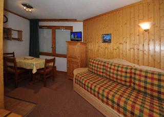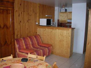 Agréable 2 pièces de 31m² pour 6 personnes. 3 points de couchages séparés. Orienté est avec balcon côté parking. Situé au 1er étage sans ascenceur Séjour : 1 cliclac pour 2 personnes (140cm) Coin entrée : 1 ensemble superposés (80cm) Chambre séparée : 1 lit 2 personnes (140cm) Télévision. Salle de bain avec baignoire. Wc séparés. Accès direct aux pistes. Labe qualite 3 bouquetins Classe 2 etoiles 6 personnes