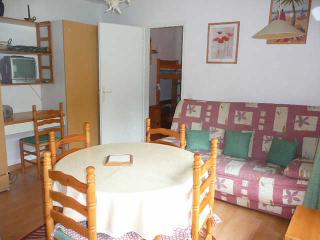 Studio de 4 personnes, 24m², situé à côté du belambra, derrière la croisette, au 5ème étage avec ascenseur, orienté ouest avec balcon. Bat construit en 1964,chauffage individuel, parking public extérieur gratuit. Salle de bain avec douche, wc dans salle de bain. Cuisine avec four. Apt avec télévision Séjour : 1 ensemble gigogne (80cm) coin nuit séparé du séjour par un rideau : 1 canapé-lit bz pour 2 personnes (140cm) Interdiction de fumer dans l appartement