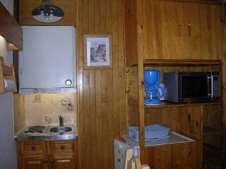 Studio de 2 personnes, 13m², orienté nord avec un tout petit balcon, au 1er étage avec ascenseur. Salle de bain avec baignoire sabot, wc non séparés. Séjour : 1 ensemble supersposés. Possibilité d'un lit gigogne en plus Cuisine avec micro onde et cafetière électrique. Télévision Couchage en hauteur ne convient pas aux enfants de - de 6 ans. Bât. Construit en 1969. Chauffage collectif. Pkg public extérieur gratuit Interdiction de fumer dans l appartement