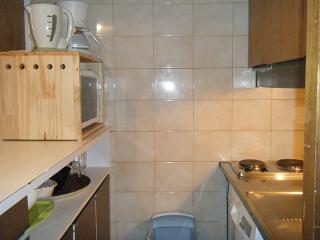 Kitchenette: dans le séjour. Équipement de la cuisine : 2 plaques électriques, mini-four ou micro-ondes, réfrigérateur, cafetière électrique.
