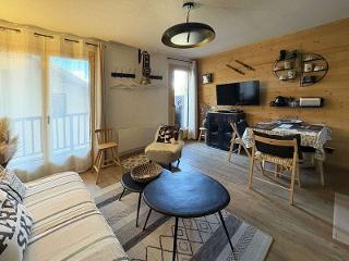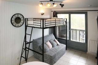 A 150 mètres du centre de la station, à 200 mètres du télésiège de Prébois, à 2 minutes à pied de la patinoire, très joli studio équipé pour 5 personnes. Studio de bon confort, composé d'un coin montagne avec deux lits superposés une place, un second coin montagne avec 1 lit 1 place, une salle de bains et WC indépendants, une cuisine ouverte, un séjour avec une banquette convertible deux places, un balcon exposition Sud/Ouest vue sur la forêt. La remise des clés se fera directement auprès de l'agence LOGEVAC.