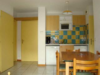Appartement de type 2 composé d'une entrée, coin nuit avec 1 lit double en 140 (2 couchages), SdB, wc, kitchenette équipée, séjour/salon disposant d'un canapé gigogne (2 couchages), une chambre équipé de 2 lits superposés en 90 (2 couchages). Balcon, casier à ski, à deux pas des remontées mécaniques.