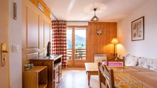 Cet appartement comprend une chambre avec un lit double, un coin montagne avec 2 lits superposés, un séjour avec coin salon, coin cuisine, une salle de bain, un WC, un balcon plein sud. Animaux acceptés sur demande avec supplément.