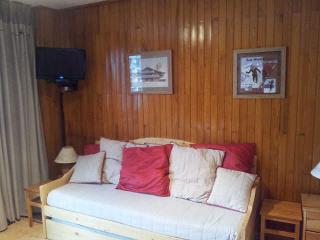 Studio de 22 m² situé en plein coeur de la station . Coin séjour agréable , un canapé lit gigogne et un canapé convertible deux personnes. Coin cuisine équipé de deux plaques électriques , d'un micro-ondes , grille pain et cafetière électrique. Salle de bain , wc avec une baignoire sabot . A proximité de tous les commerces et des pistes.