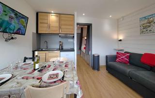 Appartement mignon et cosy de 27m² pour 4 personnes, très fonctionnel, dans un style montagne.