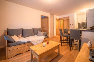 - Séjour confortable avec TV, 1 canapé convertible 2 personnes , 1 table basse. Balcon exposé SUD-OUEST équipé table bar avec vue dégagée sur les montagnes. Soleil toute la journée, ainsi qu’en soirée pour vous offrir un magnifique coucher de soleil.