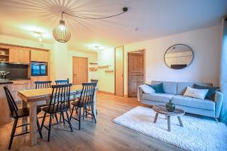 Pour 7 personnes, spacieux 66 m² avec 2 chambres et balcon, exposé SUD-OUEST avec vue dégagée sur les montagnes.