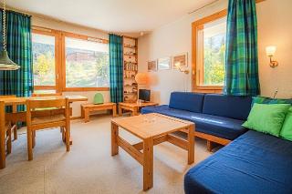 Appartement de 27m² situé au 5ème étage - Séjour avec 2 banquettes lits simples. - Chambre avec ensemble de lits superposés. - Cuisine indépendante équipée de lave vaisselle, plaques électriques, four, micro ondes. - Salle de bains avec WC indépendants. - Balcon exposé NORD OUEST avec vue sur les pistes