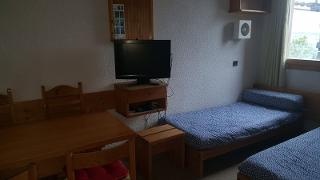 Ce studio est prévu pour héberger 4 personnes et est situé dans la résidence les Pierres Plates, sur le hameau de Crève-Coeur. Il est à 5 minutes des cours de l'ESF et du club Piou Piou, tout près des commerces et est au pied des pistes. Il est composé d'une kitchenette séparée, d'une salle de bain, d'un wc séparé et d'un balcon. Le séjour est meublé d'une cloison mobile et de 4 lits simples, tous équipés de couvertures.