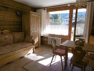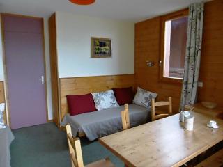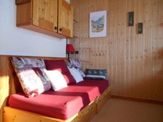 L'appartement: Appartement lumineux, fonctionnel. Séjour avec 2 banquettes lits simples. Chambre avec 2 lits simples (80 cm) et d'1 lit d'appoint. Cuisine indépendante équipée de lave vaisselle, plaques électriques, four. Salle de bains et WC indépendant. Balcon orienté Sud est. Casier à skis dans la résidence