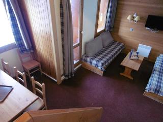 L'appartement: Dans le séjour divisible se trouve 3 lits simples, un lit gigogne et une télévision. La cuisine est équipée de plaques électriques, lave vaisselle, micro ondes et réfrigérateur. Salle de bains et wc indépendants. Balcon. Casier à ski dans la résidence. Notes : Attention pas de fumeurs ni de chats -important risque d'allergie-
