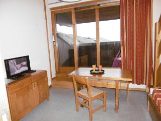 L'appartement: Studio divisible entretenu, idéal pour 4 personnes sur Valmorel. Dans le séjour divisible par cloison mobile se trouve 4 lits simples (80cm). Kitchenette équipée de lave vaiselle, plaques électriques et micro ondes. Salle de bains et WC indépendants. Terrasse avec vue sur la vallée. Casier à skis dans la résidence