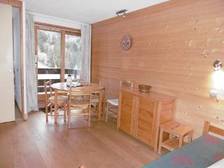 L'appartement: Dans le séjour : 3 lits simples + 1 lit gigogne. Télévision. Cuisine séparée séjour équipée de plaques électriques, lave vaisselle, micro ondes. Salle de bains carrelée et wc séparés. Balcon. Casier à skis dans la résidence. Accès en voiture devant la résidence.