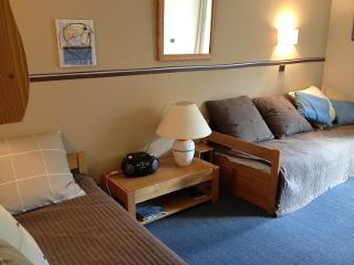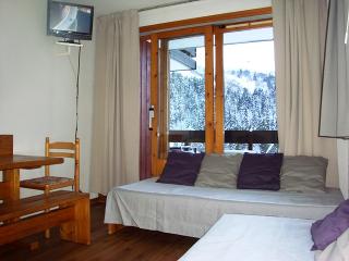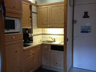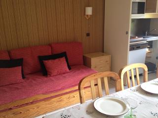 L'appartement: 2 pièces 4 personnes, lumineux, fonctionnel et bien décoré, aspect chaleureux. Entièrement rénové en automne 2011. Séjour avec une banquette lit + 1 lit gigogne . Chambre avec un ensemble de lits superposés et un lit gigogne. Cuisine indépendante équipée de lave vaisselle, plaques vitrocéramiques, four, micro ondes. Salle de bains et WC indépendants. Terrasse orientée sud est avec vue sur les pistes.